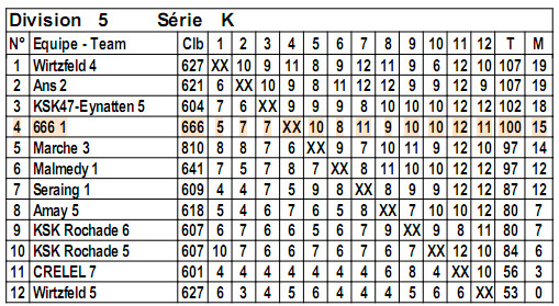 | R5 | 30/11/2014 | 609 - Seraing 1 | 666 - 666 1 | 0.5-3.5 | 43 | 5 |