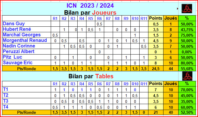 | Résultats Les classements des autres divisions et individuelles sont á voir sur ce site Si ce tableau de résultats n'est pas le dernier, faire Ctrl+F5 pour rafraichir |